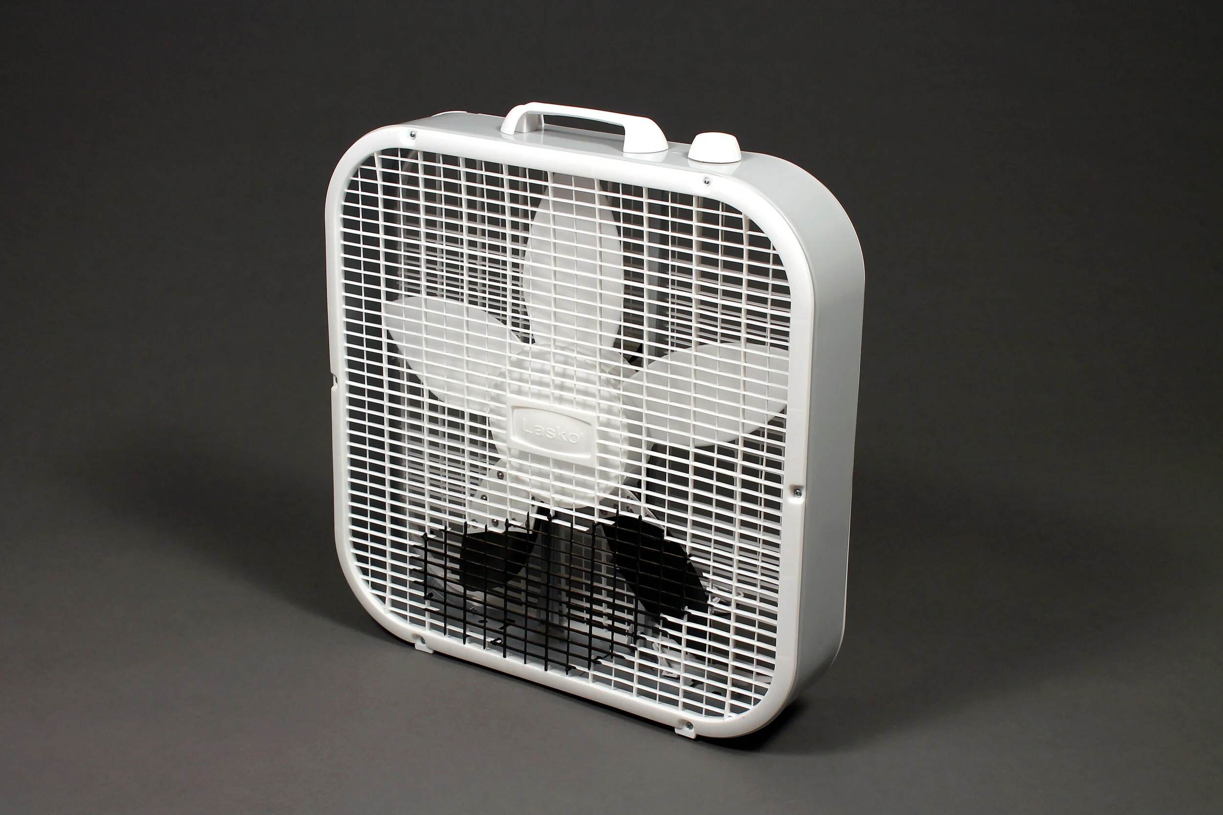 Making Amends No. 9 (box fan) / 2019 / Broken box fan, water-jet cut steel, hardware, C-print / 22” x 21” x 5”