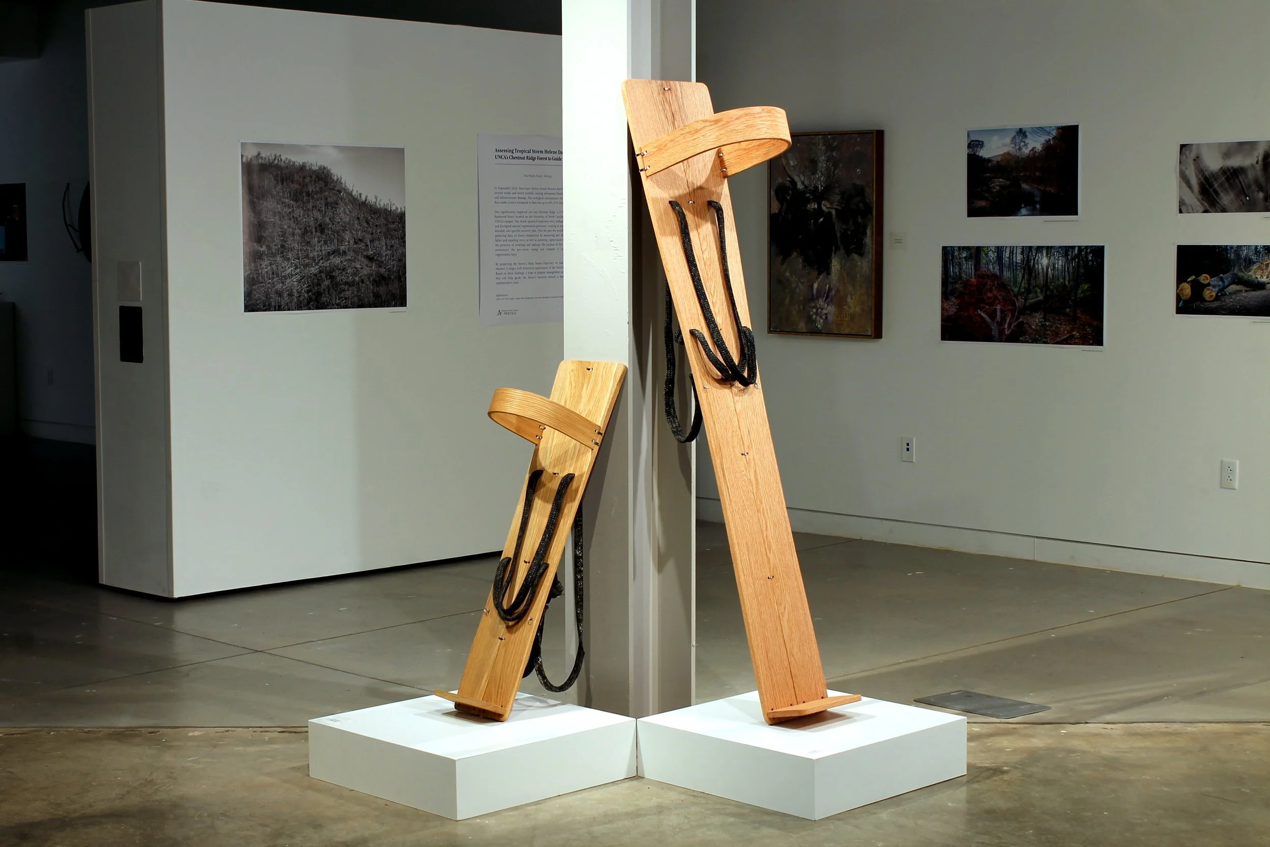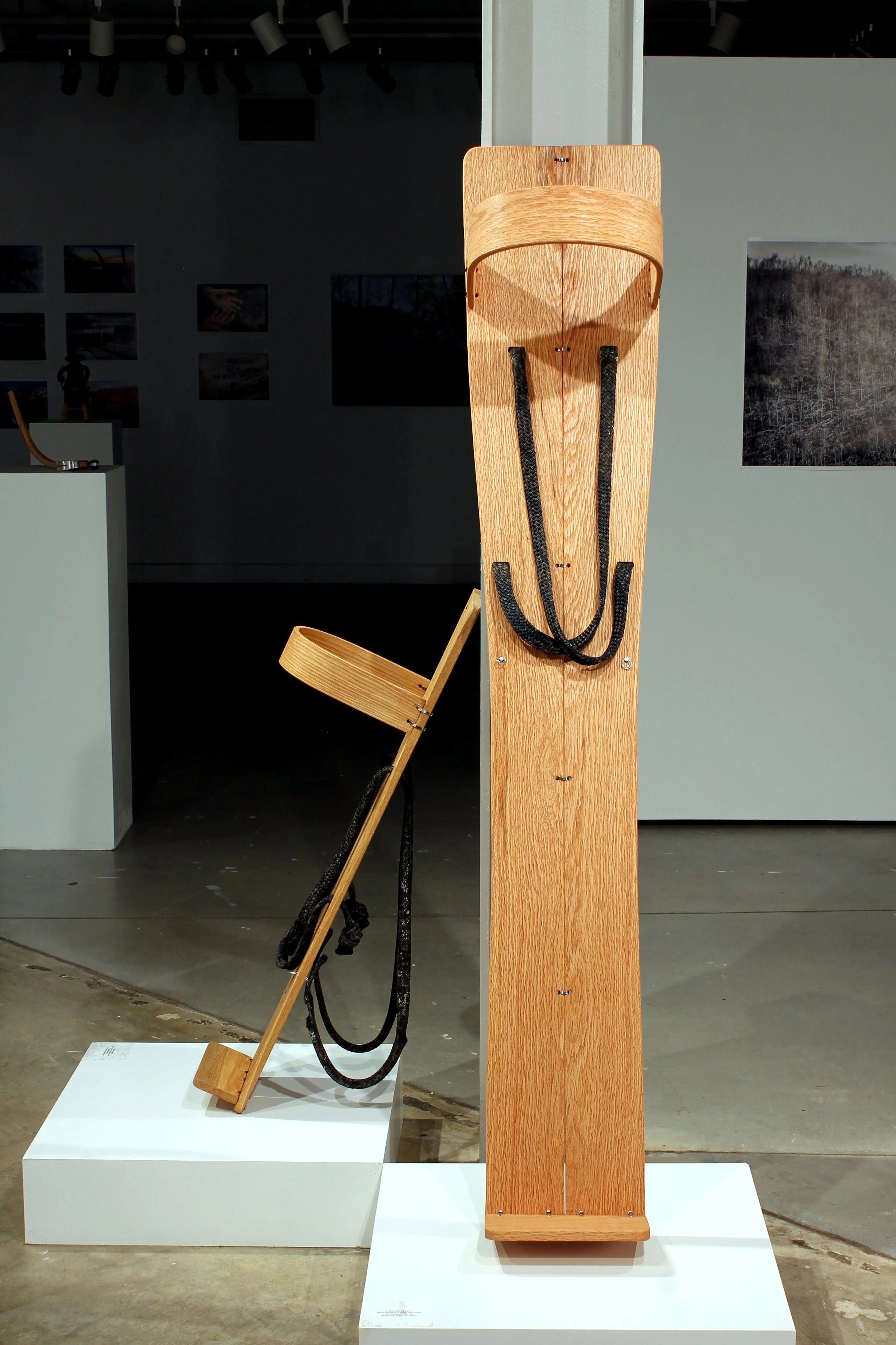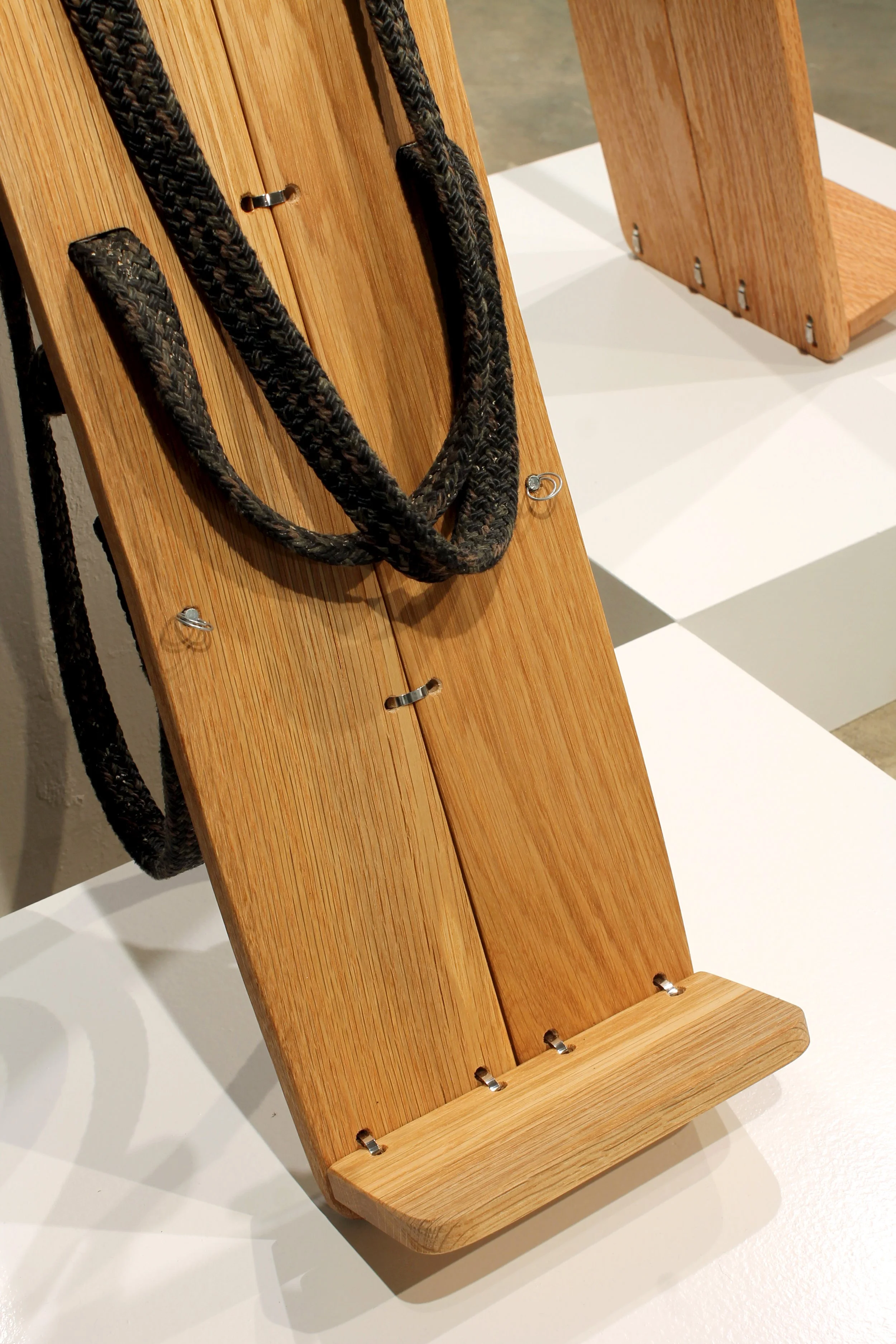 Not Everything is Black & White (Cradleboards Nos. 1 & 2) / 2025 / White oak, black oak, weathered rope, hardware