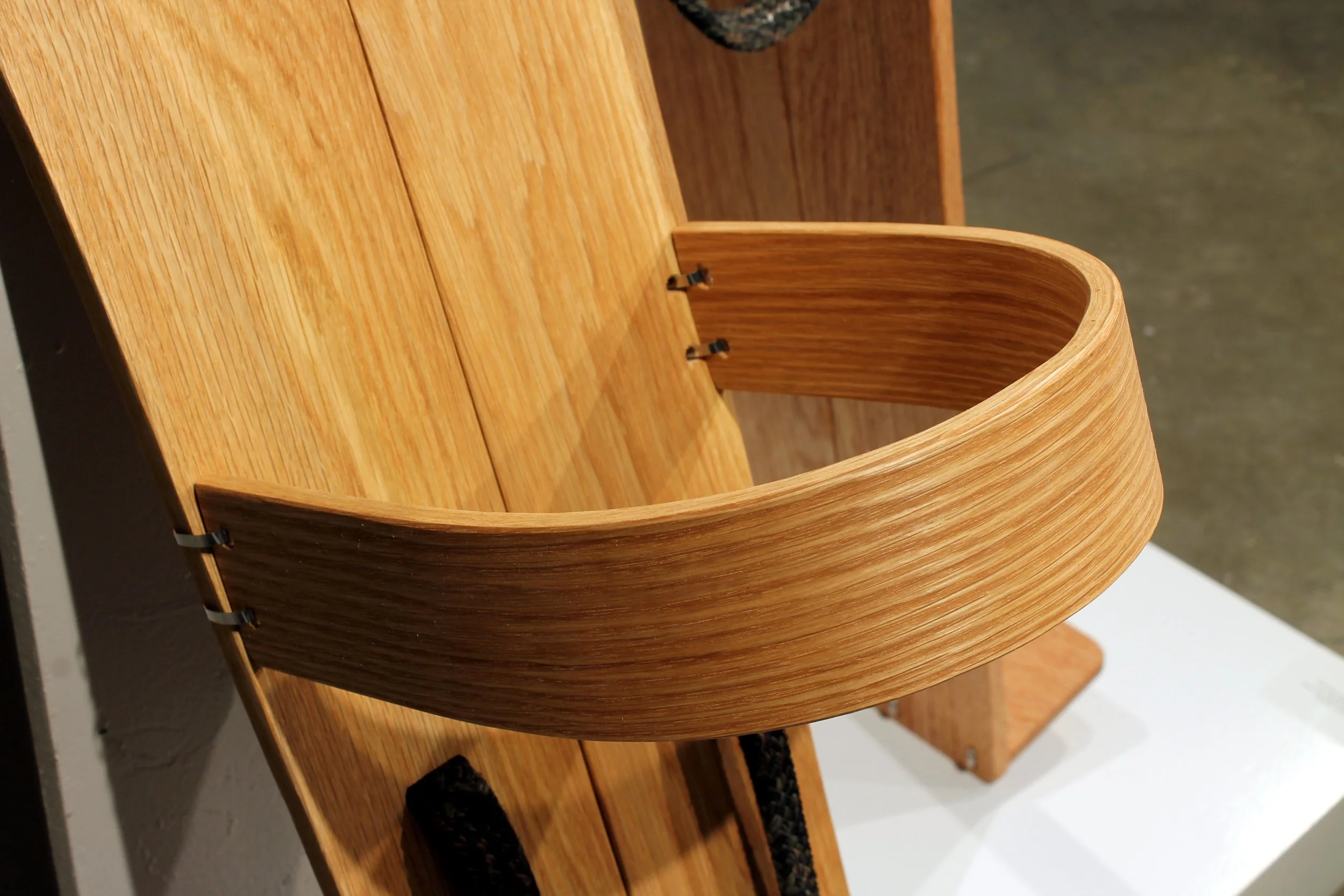 As both an artist and a lover of the natural world, I was moved to create a work of art responding to and honoring these two trees that gave up their lives to protect my family. Interested in themes of both home and travel in my artwork for almost two decades now, I began researching backpack forms for carrying children. I landed on an object found throughout North America, South America, Scandinavia and Central Asia - the Cradleboard. While styles, patterning, symbolism and overall forms are all unique to each indigenous culture, the function of the object remains ubiquitous - a portable carrier for infants. Drawing inspiration from the original purpose of this object, as well as recognizing the various cultures who have utilized it throughout human history, I designed my own simplified version with no intentions of copying any one culture.
